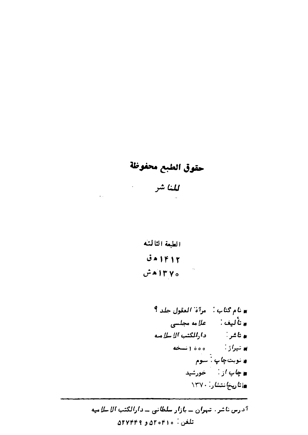 مؤلف: الشيخ محمّد باقر بن محمّد تقي ( العلامة المجلسي )