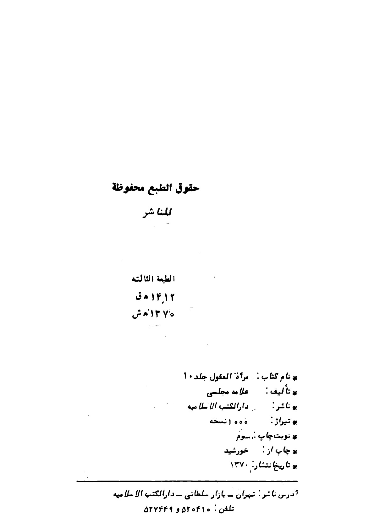 مرآة العقول الجزء ١٠