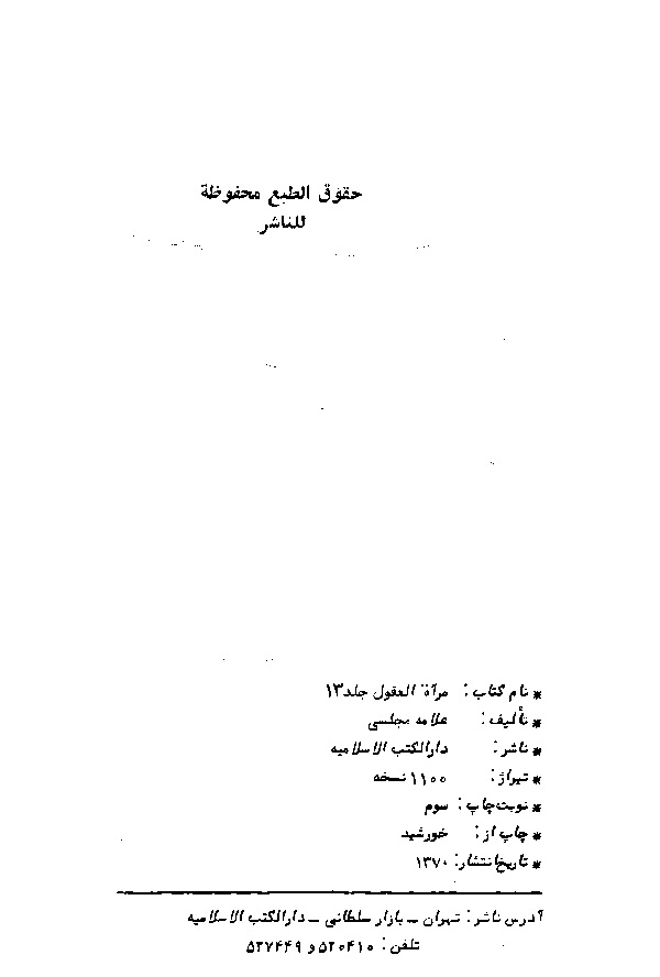 مؤلف: الشيخ محمّد باقر بن محمّد تقي ( العلامة المجلسي )