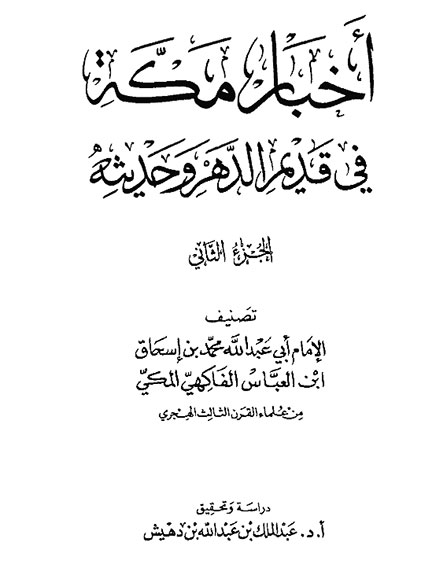 مؤلف: أبي عبد الله محمّد بن إسحاق ابن العبّاس الفاكهي المكّي